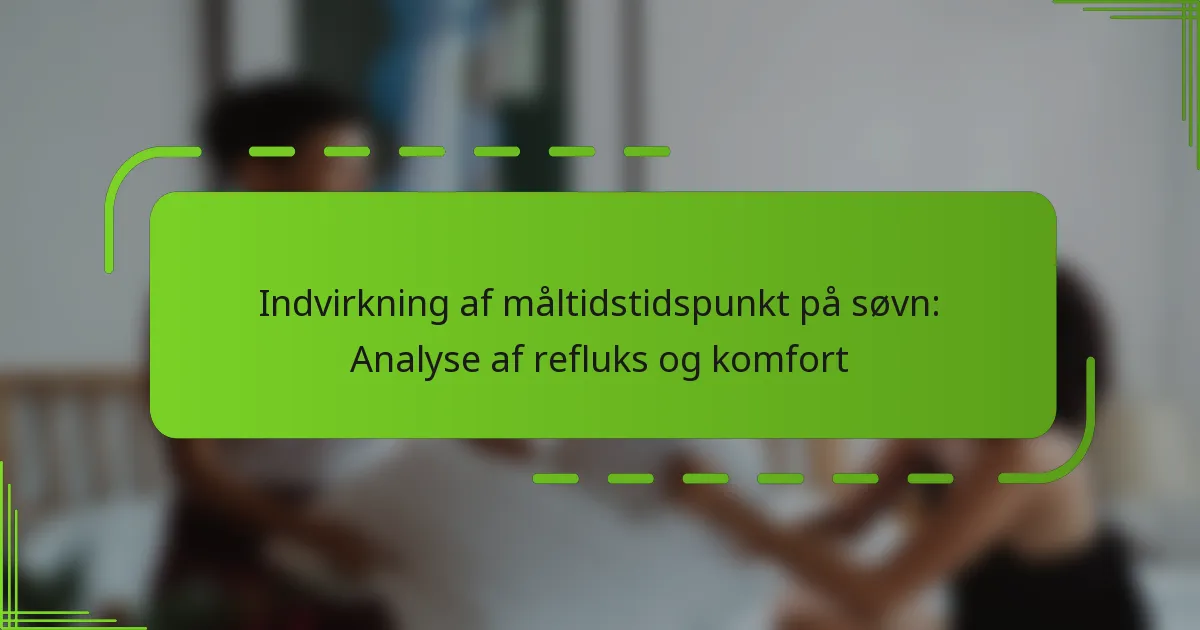 Desuden kan sen aften måltider forværre symptomerne på gastroøsofageal reflukssygdom (GERD), hvilket forårsager halsbrand og syre refluks. Disse symptomer kan forstyrre søvnen og føre til yderligere komplikationer, hvis de bliver kroniske.